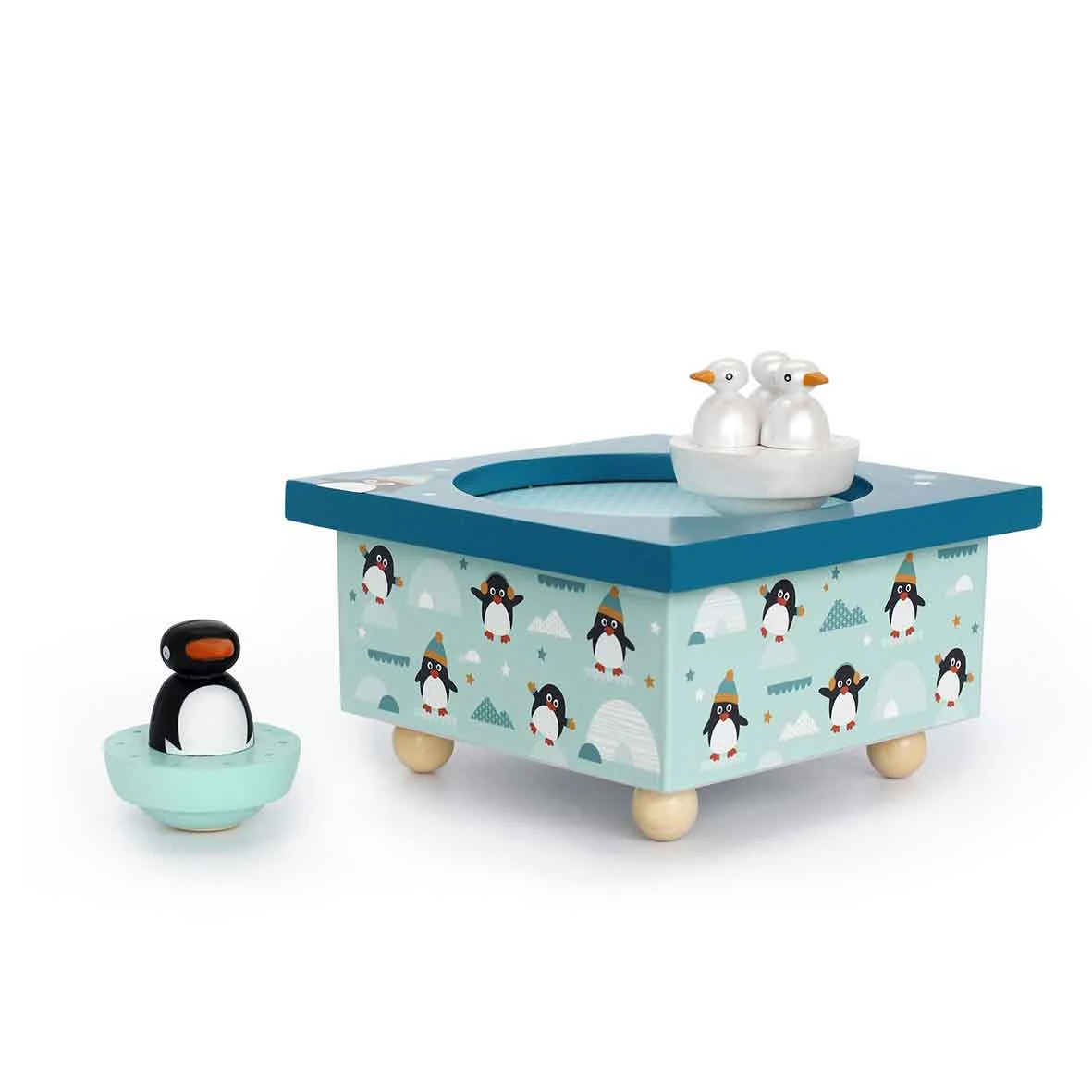 Cette jolie boite à musique en bois est accompagnée de 2 figurines aimantées. Cette boîte à musique très colorée est en peinture et sérigraphiée à la main. Ce jouet est conseillé pour les enfants à partir de 12 mois. Il faut actionner le mouvement musical situé en dessous de la boite puis mettre les figurines sur le « dancing » aimanté afin qu’elles puissent danser devant les yeux émerveillés de votre enfant.