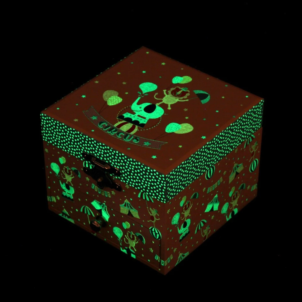 Phosphorescente, cette boîte musicale brille dans la nuit pour offrir une présence apaisante dans la nuit.