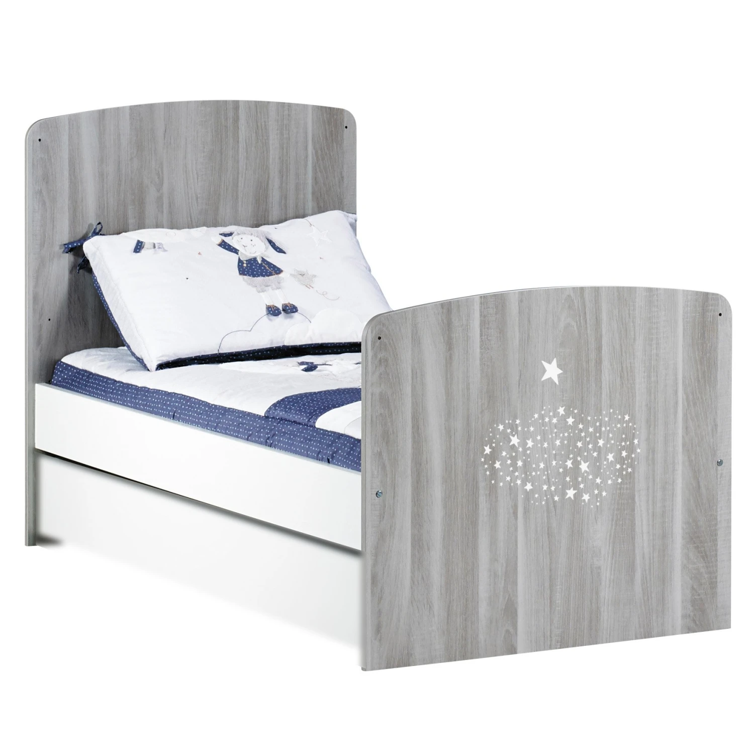Little Big Bed 70×140 + kit de transformation de la chambre Hugo de Sauthon. Le little Big Bef Hugo de Sauthon peut ainsi passer d’un lit bébé à un lit 140×70 cm version transformée pour enfant capable d’entrer et de sortir seul de son lit. Chambre disponible en exclusivité chez Aubert.