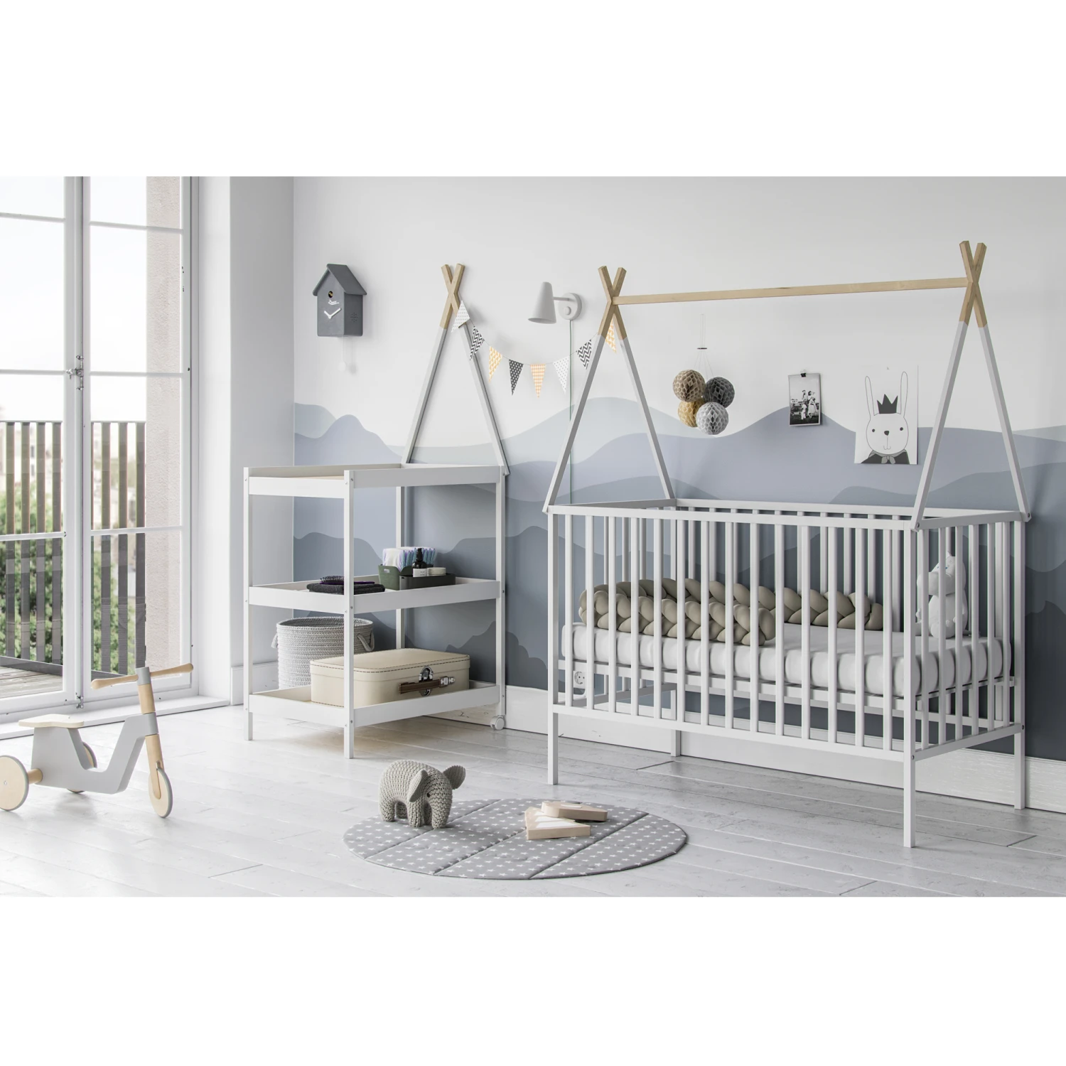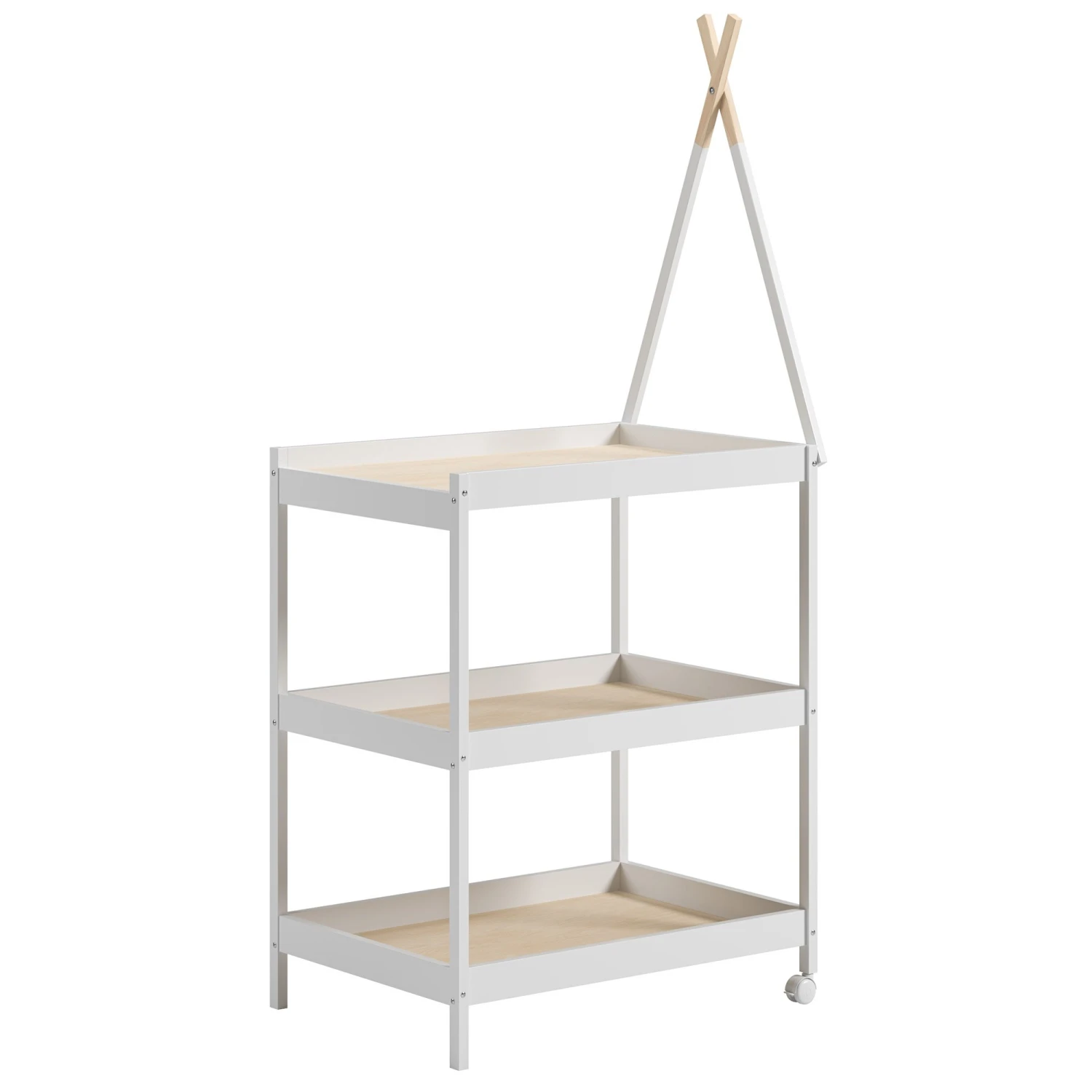 Conçue en hêtre massif de haute qualité, la table à langer Peak de la marque Vox est disponible en deux coloris : gris clair et blanc. La table à langer possède deux roulettes gràce auxquelles vous pouvez la déplacer facilement et changer votre bébé en toute sécurité. Ses deux étagères de rangement offrent beaucoup de place pour tout le nécessaire de votre enfant.